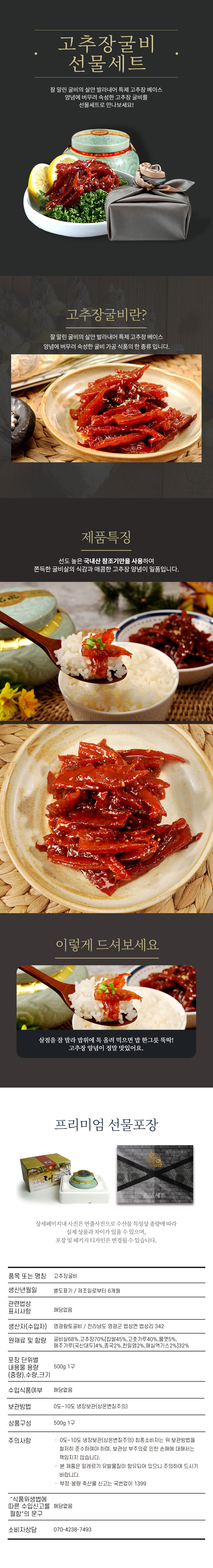 [폐쇄몰 판매가능] 그린빌리지 영광 법성포 굴비살을 통째로 넣은 고추장 굴비 500g 선물세트